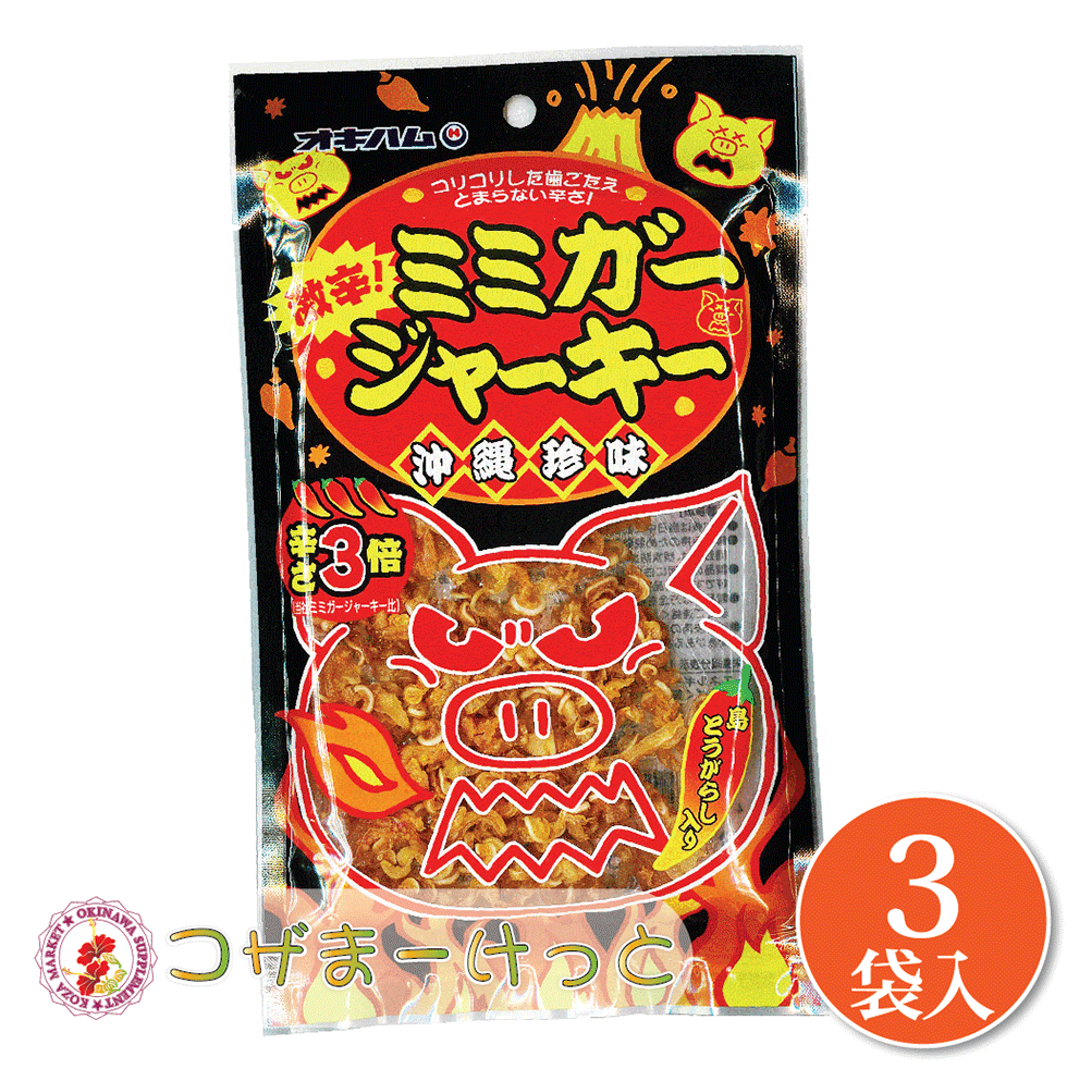 沖縄 オキハム 激辛ミミガージャーキー大 23g×3袋セット辛さ3倍 詰め合わせ ビールのおつまみ 酒肴 沖縄 珍味 豚肉加工品 酒の肴 酒のつまみ 珍味 お酒のつまみ 酒の肴 おみやげ イベント 景品 プレゼント 豚肉加工品ミミガージャーキー ギフト プレゼント ■激辛ミミガージャーキー 23g×3袋 150日 直射日光・高温多湿を避け、常温保存 激辛ミミガージャーキー 豚耳皮肉(国産)、しょうゆ、砂糖、調味酢、食酢、調味エキス、赤唐辛子(沖縄県産)、パプリカパウダー、たん白加水分解質、酵母エキス/グリセリン、グリシン、pH調整剤、酸味料、保存料(ポリリジン)、香料、(一部に小麦・豚肉・大豆を含む) ■原材料:豚耳皮肉(国産)、しょうゆ、砂糖、調味酢、食酢、調味エキス、赤唐辛子(沖縄県産)、パプリカパウダー、たん白加水分解物、酵母エキス/グリセリン、グリシン、pH調整剤、酸味料、保存料(... |