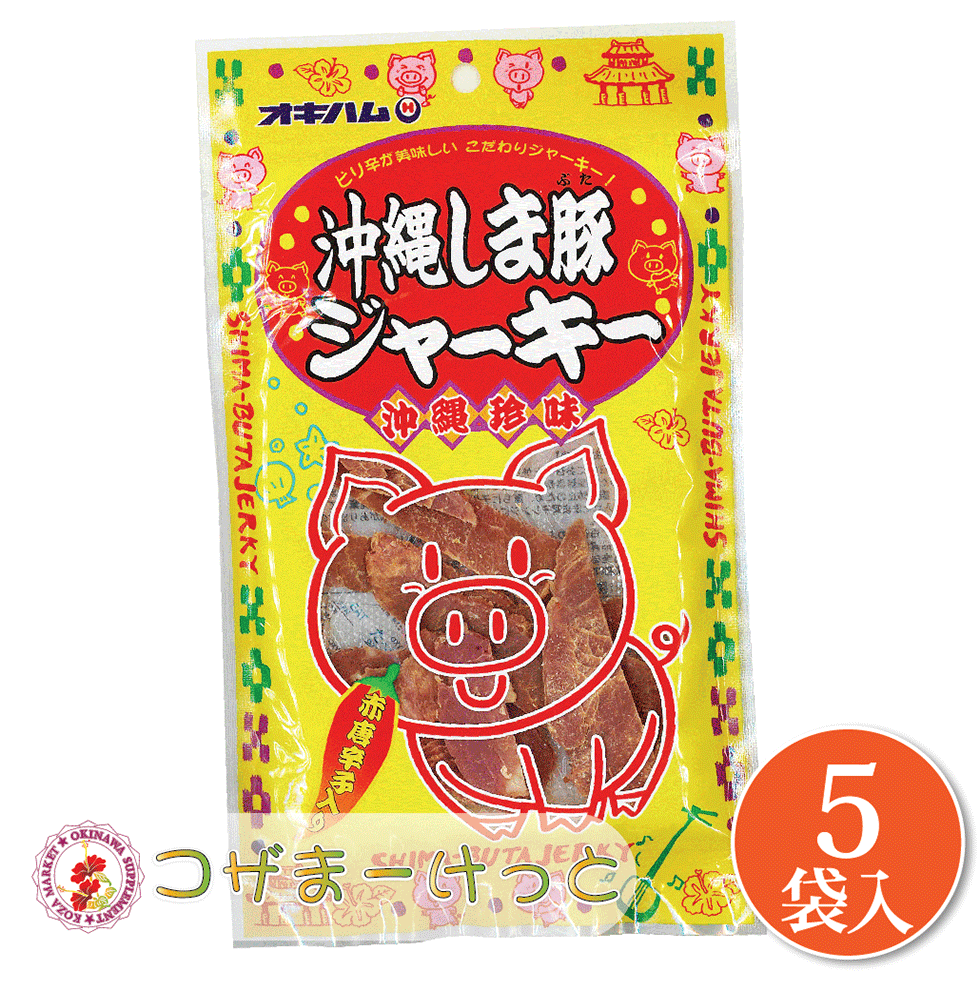 沖縄 オキハム 沖縄しま豚ジャーキー 大 25g×5袋セット 沖縄県産豚肉 ジャーキー 赤唐辛子 味噌 ジャーキー 詰め合わせ ビール つまみ 酒肴 沖縄 珍味 豚肉加工品 酒の肴 酒のつまみ 珍味 お酒のつまみ 酒の肴 おみやげ イベント プレゼント 豚肉加工品 ギフト プレゼント ■沖縄しま豚ジャーキー 25g×5袋 150日 直射日光・高温多湿を避け、常温保存 沖縄しま豚ジャーキー 豚肉(沖縄県産)、醤油、砂糖、みりん風調味料、乳たん白、みそ、食塩、還元水あめ、大豆たん白、ジンジャーパウダー、赤唐辛子、チキンコンソメ、リン酸塩(Na)、調味料(アミノ酸等)、保存料(ソルビン酸K)、pH調整剤、酸化防止剤(ビタミンC)、着色料(カラメル、カルミン酸)、発色剤(亜硝酸Na)、(原材料の一部に小麦、乳成分、豚肉、牛肉、鶏肉、大豆を含む) ■栄養成分表示(1袋25gあたり):エネルギー82k... |