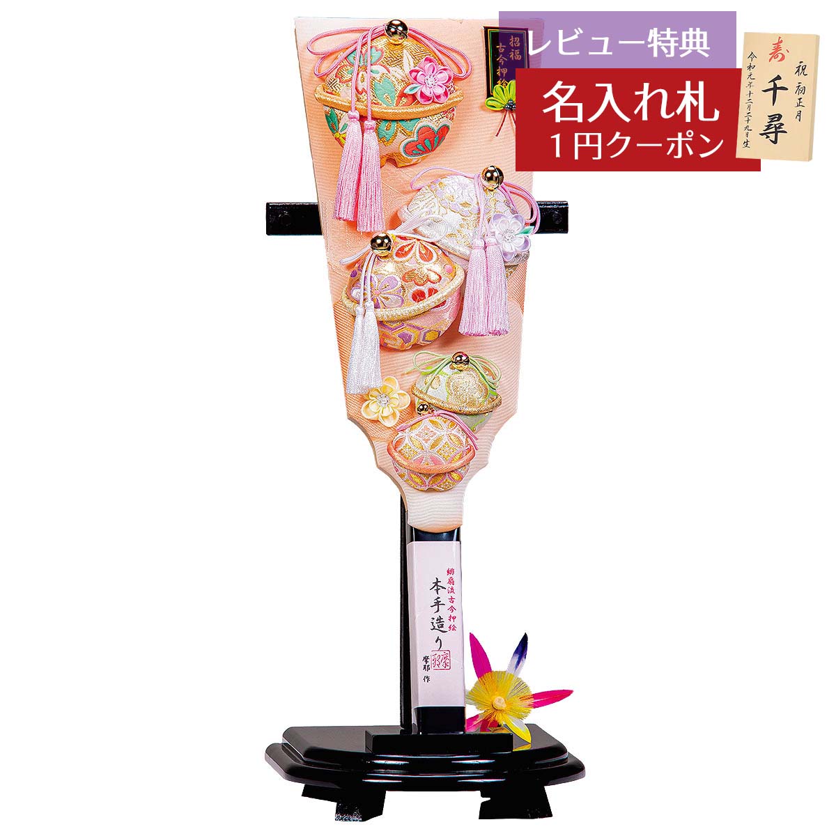 ■ 商品名、サイズなど商品番号:HGH-HJ-028種類:羽子板のみ ケースなし商品名:摩耶作 福鈴瑞雲 黒塗小判型飾り台セットサイズ:13号 高さ43cm【レビュー投稿でプレゼントキャンペーン】 商品到着後、ショップ&商品レビューの両方の投稿をすると、対象の「名入れ札」を1円&送料無料で購入できるクーポンをプレゼント。 詳しくは商品ページ内のキャンペーン説明画像にてご確認ください。 【ご注意ください】※生地の模様の出かたが異なる場合がございます。天然素材を使用している箇所がある場合は色や木目・風合いが写真とは異なる場合がございます。※使用しているモニターやOSなどの環境によって、色や風合いが違って見える場合がございます。予めご了承ください。2026年度 羽子板飾りコーナーはこちらから!様々なタイプとサイズをご用意しております。 摩耶作 福鈴瑞雲 黒塗小判型飾り台セット 商品サイズ : 1... |