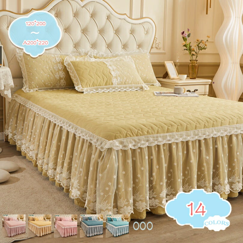 メイン素材:ポリエステルサイズ:単品 120*200(ベッドスカート) 150*200(ベッドスカート) 180*200(ベッドスカート) 180*220(ベッドスカート) 200*220(ベッドスカート) 3点セット A120*200(ベッドスカート+枕カバー*2) A150*200(ベッドスカート+枕カバー*2) A180*200(ベッドスカート+枕カバー*2) A180*220(ベッドスカート+枕カバー*2) A200*220(ベッドスカート+枕カバー*2)【キルティング加工】いつまでも型崩れしない仕立て、中わたのボリュームを十二分に引き出し、型崩れや偏りを防ぐとても画期的な仕立て方法です。耐久性に優れ、長くお使いいただける商品です。【特徴】★四隅にゴムがあり、しっかり固定できるタイプ。★肌触りが良く、快適な睡眠をサポートします。★ベッド下の収納を隠しながら、エレガントにベッドを飾る... |