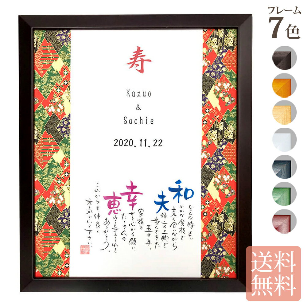 ・通常納品までに2週間ほどかかります。 ・書体、文字色、詩の内容はおまかせとなり、ご指定、事前のご確認はできませんのでご了承下さい。 ・名字、動物、会社名、店名での作成はできません。 ・1回のご注文フォームで 1枚のご注文となります。 ・カタカナのお名前は、ひらがなでの作成となります。ご了承下さい。 ・お名前の文字を漢字の一部して作成する場合もございます。(例)子⇒季・存など。 ・その他の作成にあたっての注意事項は「作成の注意事項」画像・「よくあるお問い合わせ」画像をご覧ください。 ・お客様都合による返品はできません。 商品説明 ネームインポエムとは、そのフレーズ通り、名前を織り込んで作るポエムのことです。専属の作家がお名前と用途から作詩して丁寧に綴るポエムは、想いの伝わる、世界に一つだけの作品となります。 綺羅びやかな友禅和紙が目を引く、お祝いにふさわしいデザイン。フレームカラーは、ブラ... |