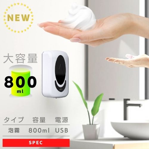 evidence-summer223商品説明商品仕様非接触式高感度センサー0.25秒反応ソープディスペンサーは最先進の高感度赤外線センサーが搭載するため、0.25秒で石鹸を手にすばやく効率的に分散させることができます。手をかざすと赤外線センサーが感知してソープが自動的に出てきます。操作簡単、使用便利。優れた非接触式の手洗い体験を提供します。手動式に比べると自動的出るソープディスペンサー自動泡は、安全衛生、二次感染を防止します。ご家族の健康を守っていただけます。350ml大容量&USB充電式容量が350mlでたっぷりです。高品質なABS材を採用され、長くご利用頂けます。超大バッテリ容量1200M容量L、一度の充電で最大3ヶ月間使い続けられるため、頻繁な充電も必要なくお好きな場所へ持ち運んで使えます。電池交換不要で配線も不要の省エネ充電タイプで、USBポートからの充電が可能です。安心保障さまざ... |