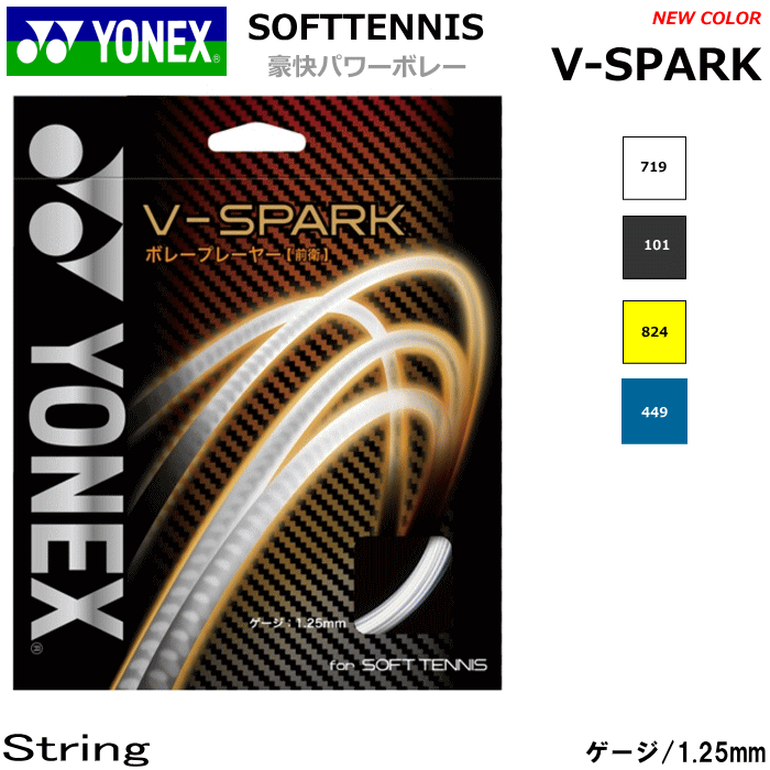 YONEX ヨネックス ソフトテニス ガット V-SPARK V-スパーク 豪快パワーボレー。 ボレープレーヤー(前衛向け) 打ち応え重視 振って叩く攻撃的なプレーを可能にするボレープレーヤー(前衛)向けソフトテニスストリング「V-SPARK(V-スパーク)」 近年、前衛・後衛共にハーフポジションからボレーで攻める攻撃型陣形のダブルフォワードが増加傾向にあり、ハーフポジションでのプレーが増えています。 このようなプレーでは振って決める攻撃力が求められており、ラケットを力強く振り切って叩いてもボールがコートに収まるストリングのニーズを受け、本製品を開発いたしました。 芯糸にはハイポリマーポリエステルを使用し、さらに、金属よりも硬いアルミナを複合したコーティングにより打ち応えが向上。爆発的な打球音が力強い印象を与えます。 軽快な打球感と弾きで決める従来品「V-ACCEL(V-アクセル)」と、し... |