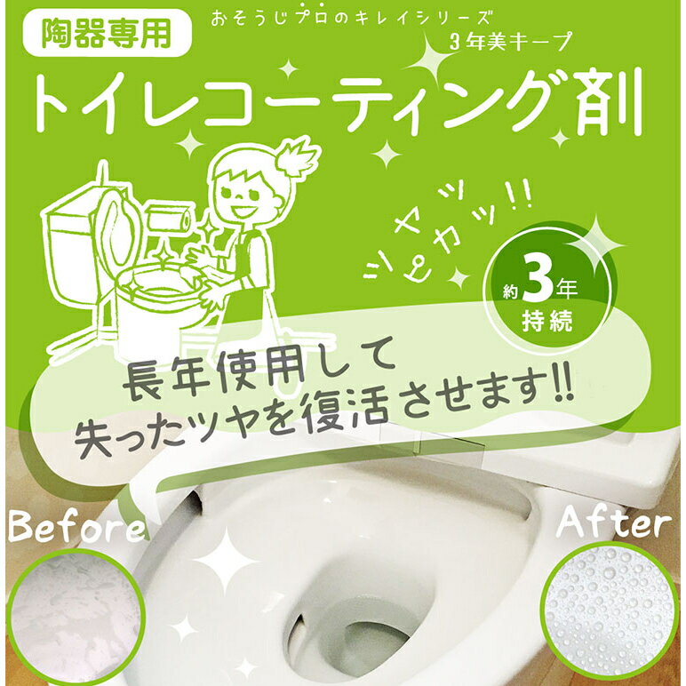 品名タイプ便器タイル陶器掃除用洗剤内容品手袋:1対 クリーナー:1個 コーティング剤:1個 クロス:1枚 スポンジ:1枚容量クリーナー:30ml、コーティング剤:10ml商品可能素材陶器用途水垢、サビ、エフロ除去塗布面積約1平米液性酸性 主成分有機酸、無機酸、腐食防止剤、安定剤その他特徴無塩酸、無リン、低臭施工のコツ・汚れや油膜はキレイに取り除き、施工面は十分に乾燥させましょう。 ・コーティング剤が少ないとスジ状に仕上がります。コーティング剤はクロスにたっぷりつけましょう。 ・2度塗り以上はムラやスジの原因になります。奥から手前へと、一定方向に塗り拡げましょう。クリーナーとコーティング剤のセット家庭用に小分けした、お掃除のプロが使っているクリーナーとコーティング剤。 長年の使用により、ツヤや撥水が悪くなったトイレが対象です! 専用スポンジとクロス、手袋もセットでついているのですぐに... |
