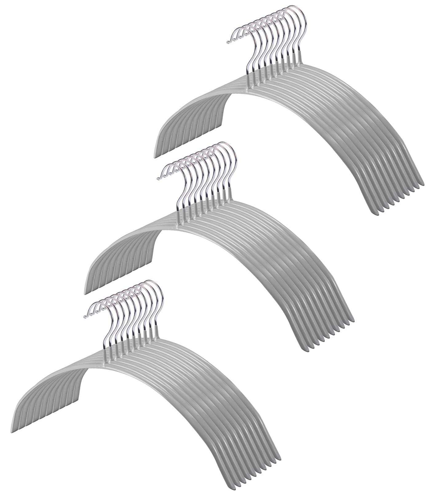 | HOSUR ハンガー すべらない 跡がつかないハンガー 30本 型崩れ防止 かたくずれ防止 はんがー 洗濯ハンガー 省スペース スーツハンガー グレー【滑りにくいビニールコーティングのスリムなスチールハンガー】スチール素材にビニールコーティングが施してあり、スルスル滑る生地もしっかりホールドしてくれる頼もしい滑らないハンガーです。【緩やかなカーブが肩のラインにフィットし、型崩れしにくい】一般的なハンガーとは異なる丸みを帯びた形状で、洋服の肩部分のシルエットを崩さず、美しい状態を維持したまま掛けられます。【鋼製で細身だけど頑丈なため、重めの服も吊るせる】この商品は、鋼製で非常に丈夫な作られてます。耐荷重約6kgとその丈夫さはかなり優秀と言えるので、冬のコートやジャケットなど重めの服をかけても安心です。【スッキリと収納できて見た目もスタイリッシュ】ハンガー自体の厚みが1cmと非常にすっきりして... |