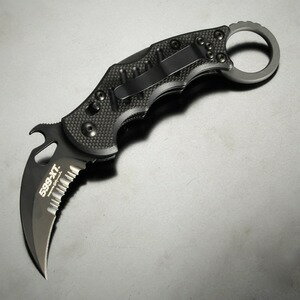| フォックスナイブズ KARAMBIT セレーションボーラー社製の高級鋼材を使用したフォールディングカランビット実用性とデザイン性に優れたナイフを数多く手掛け、世界中から高い評価を受けるイタリアな刃物メーカー「FOX KNIVES」のカランビット。ブレード材にオーストリア・ボーラー社のステンレス鋼N690Coを採用。優れた強度と耐食性、耐摩耗性に加え、研ぎやすさも兼ね備えた高級鋼材です。ブレードは高耐久コーティング「セラコート」によるブラック仕上げ。ブレード根本側にセレーションを備え、ロープやコードを効率よく切断できます。G10素材製のハンドルスケールには細かな滑り止めパターンが刻まれ、濡れた手でもしっかりと握ることが可能。ブレードを固定するバーにはロック機構を搭載し、意図しないブレードの開閉を防止できます。ハンドル側面のポケットクリップは左右に付け替え可能。予備のクリップと固定ネジがもう1... |