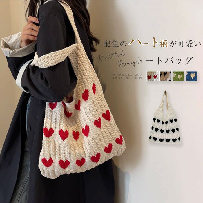 メーカー希望小売価格はメーカーカタログに基づいて掲載しています【商品説明】【カラー】 ベージュ/ラクダ色/グリーン/ブルー(写真参照)※お客様ご使用のPC環境により商品画像のカラーが多少異なる場合があります。仕入時期により多少デザインなど異なる場合があります。ご了承ください。 【サイズ】 本体/高さ:約32.5cm 横(最大):約36.5cm ショルダー紐:調節不可※サイズは人の手によって測っているため、1-3cmの誤差がある場合がございます。予めご了承下さいませ。 【素材】 ポリエステル 【生産国】 中国 キーワード ニットバッグ トートバッグ レディース オールシーズン バッグ 軽量 シンプル 肩掛けカバン 大容量 可愛い カワイイ 手提げかばん ニット 大容量 エコバッグ トート ニットトート カジュアル おしゃれ ハート柄 ハート 軽い ガラ 柄 A4 A4サイズ 通勤 通学 日常... |
