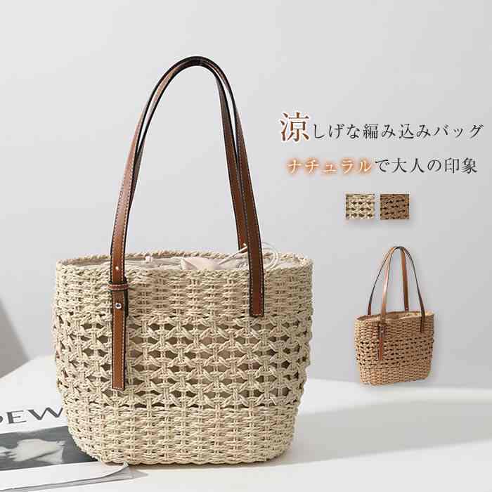メーカー希望小売価格はメーカーカタログに基づいて掲載しています【商品説明】【カラー】 ベージュ / キャメル (写真参照)※お客様ご使用のPC環境により商品画像のカラーが多少異なる場合があります。仕入時期により多少デザインなど異なる場合があります。ご了承ください。【サイズ】(CM) 本体/高さ:約21cm 横(最大):約28cm マチ:約10cm 手提げ高さ:約23cm 調節不可※サイズは人の手によって測っているため、1-3cmの誤差がある場合がございます。予めご了承下さいませ。 【素材】 外側:ペーパー素材 内側:ポリエステル100% 【生産国】 中国 キーワード かごバッグ レディース 手編み メッシュ春夏 ネットバッグ 編みバッグ 大容量 エコバッグ トート 夏バッグ ストローバッグ ビーチバッグ トートバッグ マクラメ 内袋 春 夏 軽量 手提げ 可愛い おしゃれ 大人 上品 きれ... |