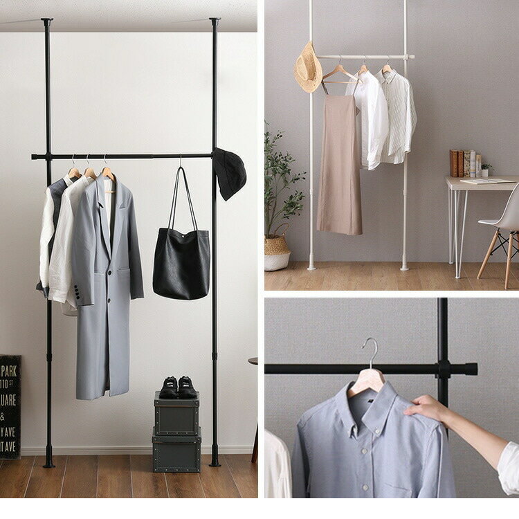 メーカー/原産地:海外 / 中国商品の状態:新品発送国:国内 (日本)床と天井があれば、お部屋のどこでも使う事が出来る、おしゃれなつっぱりハンガーラック!質感にこだわったデザインで、ざらりとした質感が高級感を演出します。壁一面を衣類収納にしたり、ベッドサイドでコンパクトに使ったりできます。また洗面所で使用したり、部屋干しをする際にも使用することができます。横ポールが2段あるのでたっぷり収納できます。高さ調節することができるのでコートなど丈が長い衣類も収納できます。【素材】パイプ:塗装ステンレス鋼管B部:亜鉛合金ネジ類:スチールバネ:ステンレスフック:AESOリング:ゴム(NBR)【商品サイズ】(約)W120~200×H205?275×D9cm【商品重量】約4.5kg【梱包サイズ】3-1:14.5×6.5×136cm3-2:12×10×111cm3-3:12×10×111cm【梱包重量】約4... |