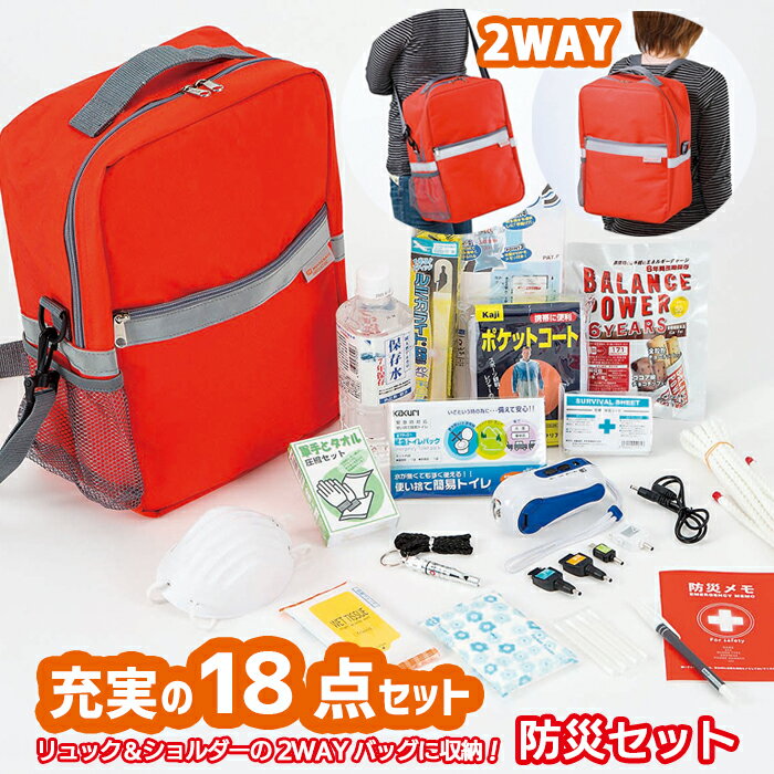 リュックやショルダーとして使用できるバッグに、避難時に必要なアイテムをセットした緊急避難、帰宅支援防災セット。 ■製品サイズ/(ケース)約幅270×高さ370×厚さ (マチ)150mm ■箱サイズ/約305×385×215mm ■製品重量/約1,950g ■JAN/4969402042970 【セット内容】 ●エマージェンシーバッグ ●ミニダイナモラジオライト ●保存飲料水(500ml) ●保存食(スーパーバランス8本入) ●ルミカライト6インチイエロー ●ポケットコート ●サバイバルシート ●IDホイッスル ●ロープ5m ●非常用給水バッグ5L ●緊急トイレパック ●軍手とタオル ●綿棒4本、ポケットティッシュ ●ダストマスク ●ウエットティッシュ ●防災メモ ●ボールペン ご注意 防災セットのセット内容は、商品の入荷状況によって商品パッケージが違う場合や品質が同等の商品で代替対応させて... |