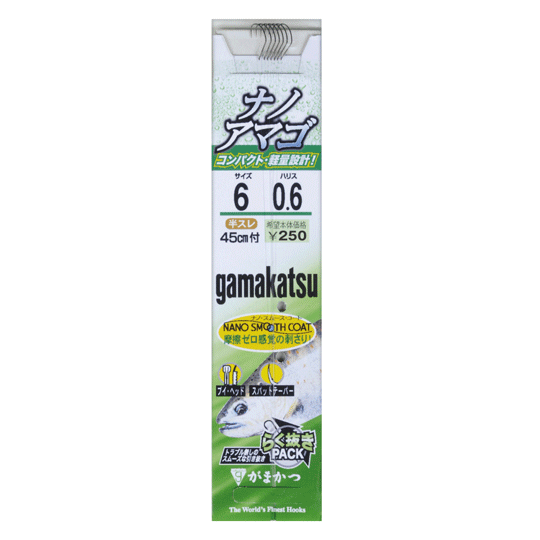 仕様表アマゴ鈎の基本形である狐型を継承しつつ、鈎先部は貫通性能をより高めるため「ストレートポイント」に仕上げています。低摩擦コーティング「ナノスムースコート」を採用することでより摩擦抵抗を軽減し、高い貫通力を発揮します。スムーズな餌付けと、これまでにない驚異の鈎立ちを実現しました。Gamakatsuがまかつ 糸付 ナノアマゴ●品名コード:11987●号数:6●ハリス:0.6●入数:7詳細はこち... |