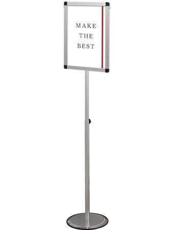 ※返品について■メーカー常盤精工■特徴【表裏両面に展示可能】入り口側には「いらっしゃいませ」出口側には「ありがとうございました」等、アクリルケースの両面にポスターが展示できます。【ポスターの交換方法】ポスターの交換は、アクリルケースの上からポスターを入れ、アクリルケースの補強バーの部分をスタンド本体に差し込みます。最後に本体背面のボルトを緩め、アクリルケースを固定すると完成です。【コンパクトな脚部】場所を取らない直径30cmの脚部は、光沢があり高級感があります。また工具不要で取り外しもできるので、収納も簡単です。■仕様●ポール=φ10#400ステンレス H880mm●ベース=φ300/スチール製/表面コートステンレス ●アクリルカードケース=(外寸)W309mm×H423mm/1.5mm厚/角R・アルミフラットバー付※六角レンチ付〔注意〕屋内用/移動の際は本体ポール部分を持ち上げて下さい。... |