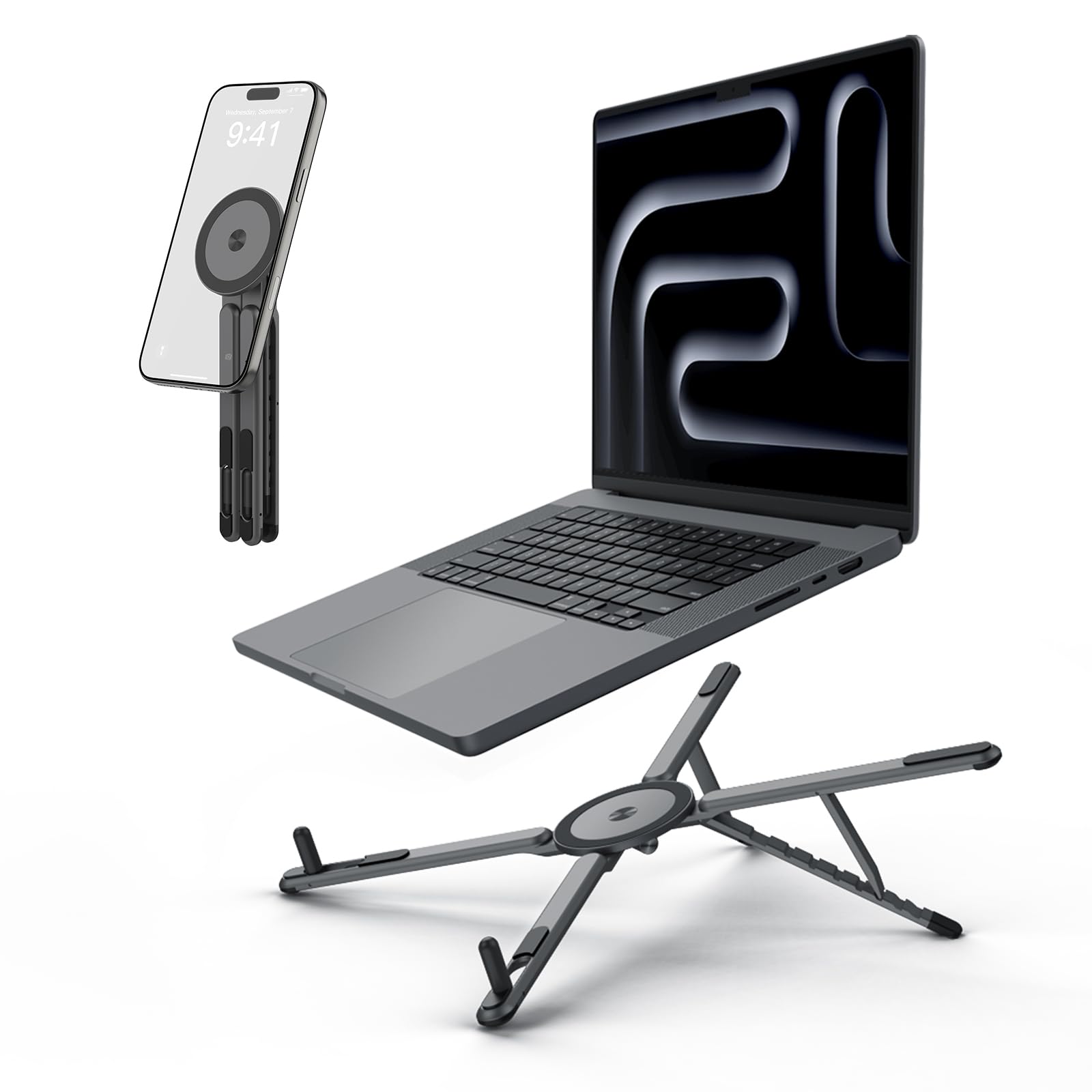 ・・【3-IN-1多機能X-Man】手持ちなら安定した自撮り棒に、台形展開でタブレット&ブックスタンドに、X型に開脚すればPC作業スタンドに変身。パーツ交換不要で、引き出しと折り畳みだけで3形態を自由にシフト。全脚部に滑り止めシリコンパッドを採用しており、タイピング時も動画視聴時も、安定性を確保するとともに、優れた使用感を提供します。・・【超コンパクト&軽量】究極の薄型軽量設計。収納時は長さ18cm×厚さ3cm、ポケットサイズ。重量わずか150g(iPhone 17 Pro Maxの重さ:231g)の超軽量ボディで、携帯性抜群。通勤カバンはもちろん、手持ちのバッグやコートのポケットにもすっと収まり、出張先、図書館、喫茶店等様々なシーンですぐに展開して使用可能。折りたたむだけでコンパクトに収納できるため、スタンドが場所を取る心配はありません。・・【8段階の高さ調節】革新のスプリングアシスト設... |