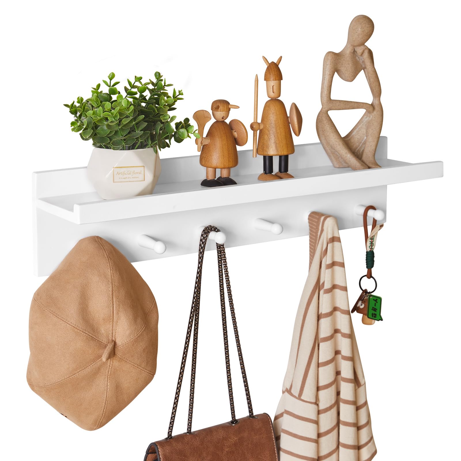 ・空間を有効活用:天然木製の壁棚は、ご要望に合わせて自由に組み合わせ可能です。壁面スペースを最大限に活用し、ナチュラルな木目調が空間に温もりを添えつつ、収納力アップでお部屋を広々と快適に。インテリアに溶け込む機能美で、スマートな暮らしを実現します・使いやすい: 壁棚には丸頭フック4つと置物棚が付いており、丸頭フックは精巧に研磨され、滑らかで、個々衣類を守ります。棚部分は幅を広くした設計で,落下防止の仕切り板付きです。この壁掛け棚は衣服、帽子、バッグなどの吊り下げられるだけでなく、時計、写真立て、カレンダーなどを置くことも可能で、収納の柔軟性が増します・木製のウォールシェルフ:タイから輸入された天然ゴムの木を厳選して使用しており、材質は硬く、木目が美しいです。さらに、高基準の水性クリアワニスを塗装しており、この壁棚に質感と温かみをたっぷりと与えています・幅広い用途:この壁棚は様々なシーンに適... |