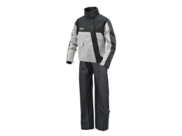 【品名】 DR-001 ハイパフォーマンスレインウエア 上下セット グレー 【品番】 48299 【仕様】 カラー:グレー サイズ:BL ライダーが濡れないことを最優先に考えた、バイク用 防水・透湿 高性能レインウェア ジャケットは、動きやすいストレッチ生地を使用し、斜めに配置したフロントフラップがファスナーからの浸水を防止。首元には内側がクロロプレン素材の高い襟を採用し、袖口は二重袖とサムホール、裾は二重裾とドローコードで雨滴の侵入を防ぎます。背中のベンチレーションがムレを防ぎ、バタツキを防ぐ幅広の面ファスナーはグローブでも使いやすい設計です。パンツは、摩耗に強いPVCコート生地を使用し、裾はロングブーツでも履きやすい幅広の面ファスナー仕様。熱に強い綿生地のマフラーガードも装備しています。腕とひざには厚手の生地を使うことで雨滴による痛みを軽減。雨天時の視認性を高める反射パイピングも装備し... |