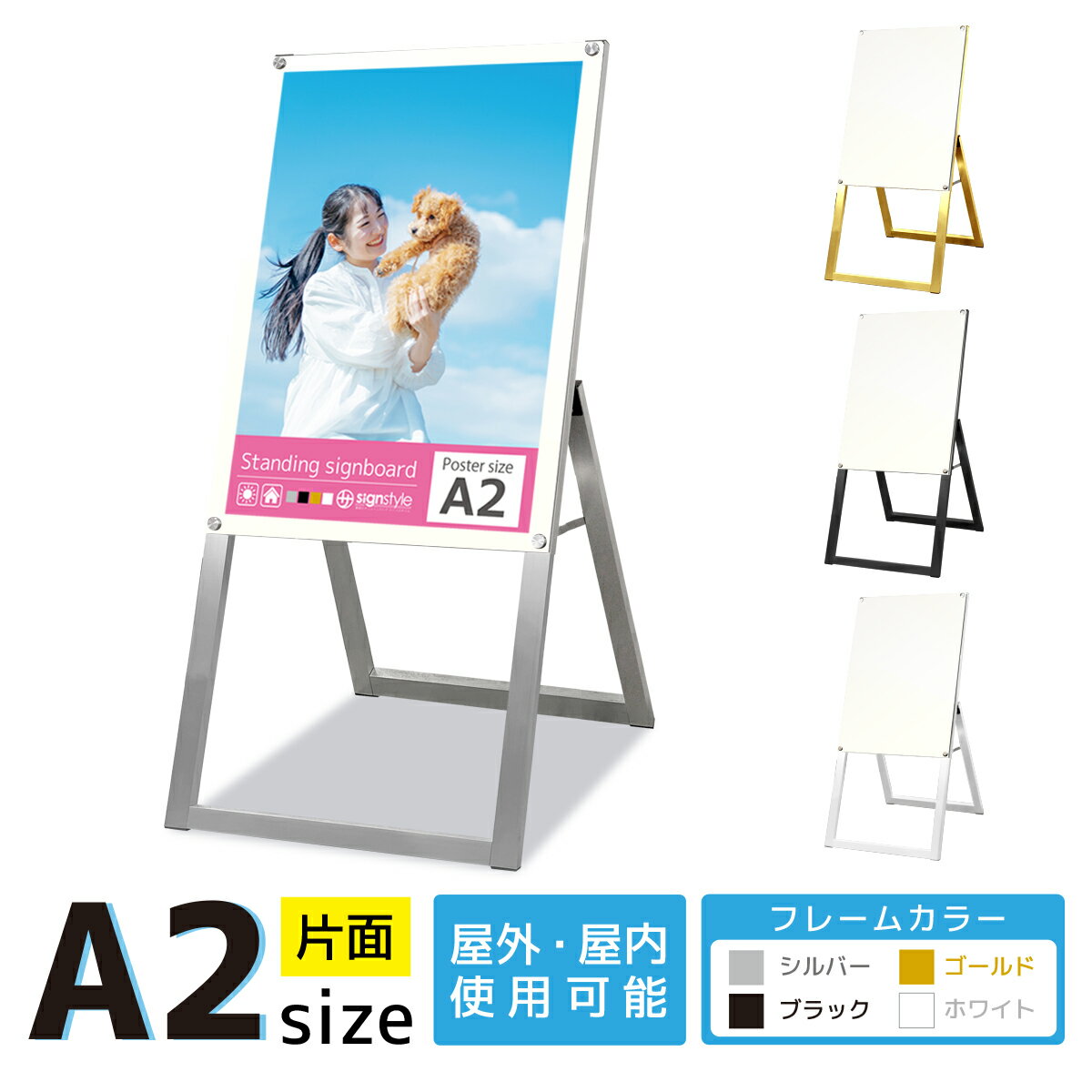 商品名「A型フレームレススタンド」 A2サイズ 片面サイズポスターサイズ:A2※必ずラミネート加工されたポスターをご利用ください。外寸H1050mmxW492mmxD480mm※収納時 H1100mm仕様片面カラーバリエーションシルバー ホワイト ブラック ゴールド素材アルミパイプ20*40アルミ複合板3mmアクリル4mm(クリアのみ)アクリルカバー2mm重量3.6kgご注意こちらの商品は『防水加工』が施されておりません。ポスターは必ずラミネート加工が施されたもの をご使用ください。 ■ご利用されているシチュエーション 病院 クリニック 塾 スクール 英会話教室 教育施設 飲食店 カフェ 居酒屋 レストラン スナック カーディーラー カラオケ サロン ネイルサロン ヘアサロン 美容室 市役所 説明会 サービスエリア ショッピングモール 百貨店 映画館 フィットネスクラブ フードコート アパ... |