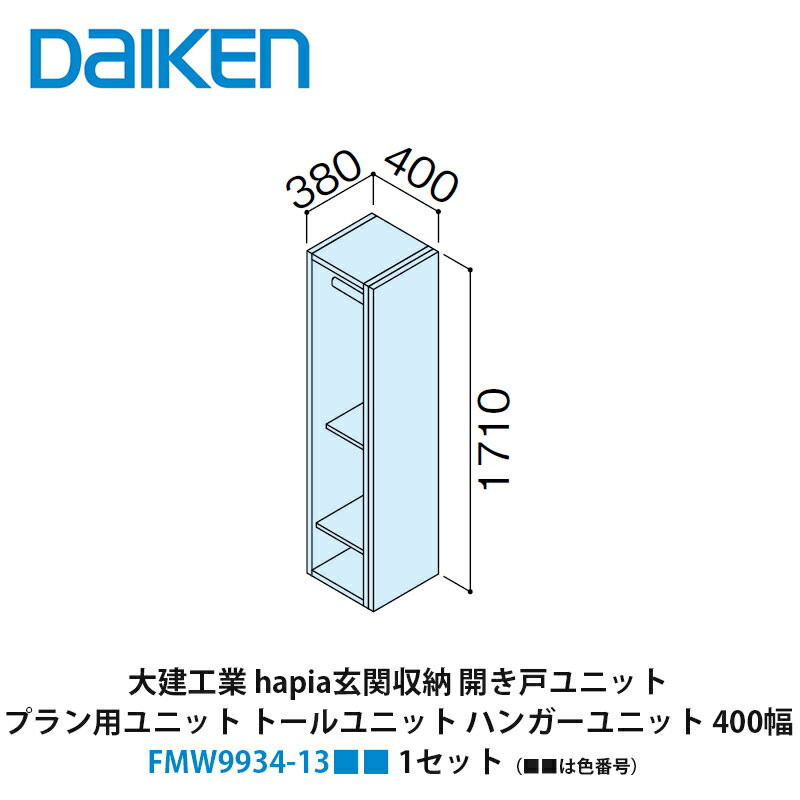 メーカー希望小売価格はメーカーカタログに基づいて掲載しています ※カタログのメーカー小売希望価格は、税抜き価格となっております。この商品は 大建工業【ieria(イエリア)玄関収納 開き戸ユニット プラン用ユニット トールユニット ハンガーユニット 400幅 H7(2000高用) FMW9934-14■■(■■は色番号) 1セット】 ポイントコートなどのアウターを簡単に掛けられるハンガーユニットです。旧hapia(ハピア)シリーズ ショップからのメッセージ 納期について ... |