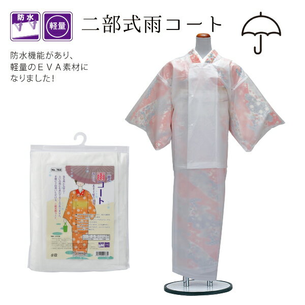 お仕立て上り和装コート雨用コート 二部式雨コート 道行雨コート 振袖用 二部式雨コート ・ レインコート あれば重宝する振袖用レインコートです 乳白色の透明で、二部式雨コートとなっています。 着用時にも柄が見えておしゃれです。 大切なお着物を水から守る雨具(振袖用)です。 雨コートとしてご使用いただけます♪ 袖部分は下55cmほど筒状になっているので、 袖がスッポリ入り、雨・汚れから袖を守ります。 二部式下部は、巻きスカートになっていますので、 泥跳ねなどから振袖を守ります。 雨上がりにも、巻いてご使用いただくのもオススメです。 【色】乳白色透明 【品質】100%EVA 【二部式上部・サイズ】 身丈:約75cm 袖丈:約110cm 裄:約72cm 【二部式下部・サイズ】 丈:約100cm 巾:約134c... |