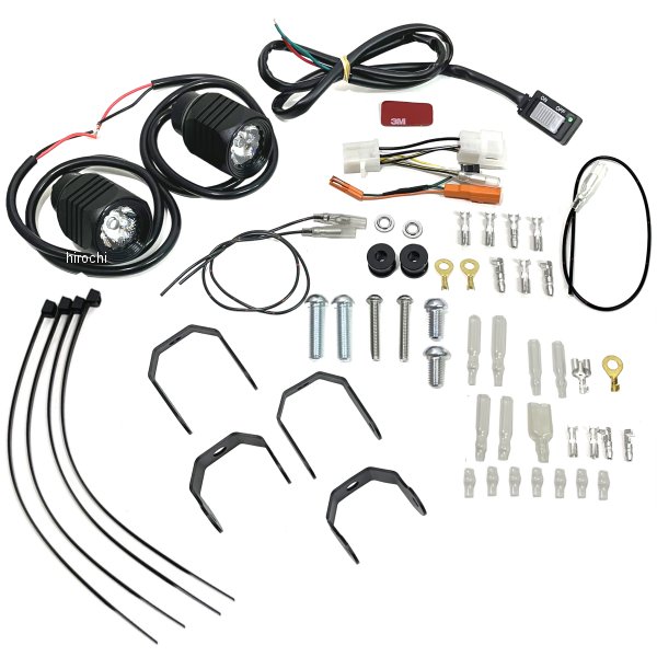 SP武川 LEDフォグランプキット3.0 95020年-25年 ホンダ ハンターカブ CT1252個入り旧品番:05-08-0523【詳細】フォグランプをご使用頂く事で、濃い霧や激しい雨の時に、ヘッドライトでは照らせない部分を補い、走行時の視認性向上及び夜間走行時の安全性を高める事が出来ます。本製品は車両のカウル加工や配線加工の必要が無く、キットの構成部品により、フォグランプを簡単に取付け出来ます。フォグランプ側のギボシ取付け加工有り。LEDフォグランプキットの取り付けについてフォグランプは、商品同梱のアルミ削り出しカラー類を使用し、純正ヘッドライトステーに装着します。※簡単なギボシ圧着加工が必要となります。高輝度LEDチップ採用LEDチップは非常に高輝度ながら低消費電力(約6.5W)を実現し、小排気量車など、発電量があまり大きくない車両であっても使用可能です。発展性のある電源用サブコート... |
