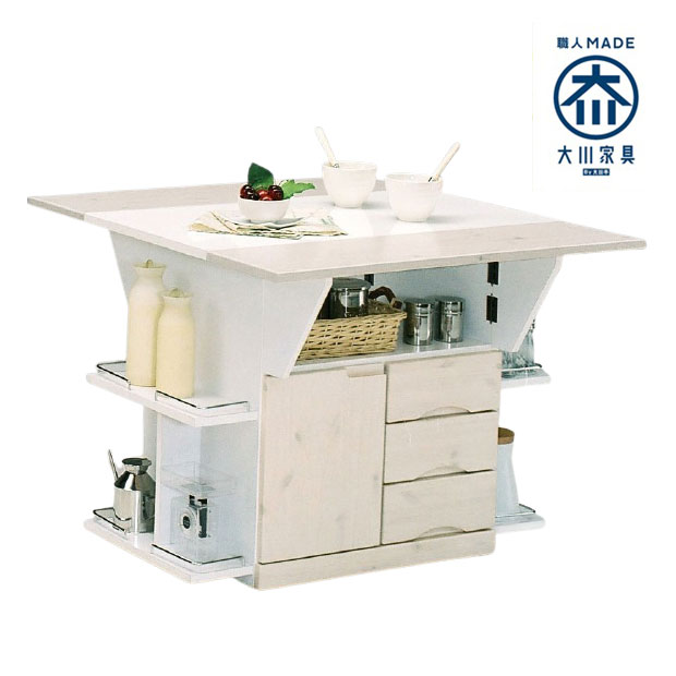 ■商品名バタフライテーブルカウンター90■商品サイズ[外寸]幅89×奥行90(折り畳み時:奥行49)×高さ70cm[内寸]オープン部(大):幅56.5×奥行40×高さ23cmオープン部(小):幅26.5×奥行40×高さ23cm扉部:幅26.5×奥行38×高さ35.5cm引き出し:幅25×奥行33.5×高さ8.5cm■素材前板・補助天板:パイン無垢材天板:アルミセラミック化粧板(ウレタンコート仕上げ)■耐荷重天板:約50kg折り畳み天板:約10kg■特徴・完成品(キャスターのみ取り付け)・安心の国産家具(大川家具)・キッチンカウンターとしても食卓テーブルとしても使用できます。・必要に応じて折り畳み部分を広げて伸長させることが出来ます。・充実した収納スペース(引き出し収納、両サイドの収納、天板下部の収納スペース)【代引きについて】こちらの商品は、代引きでの出荷は受け付けておりません。【商品配送... |