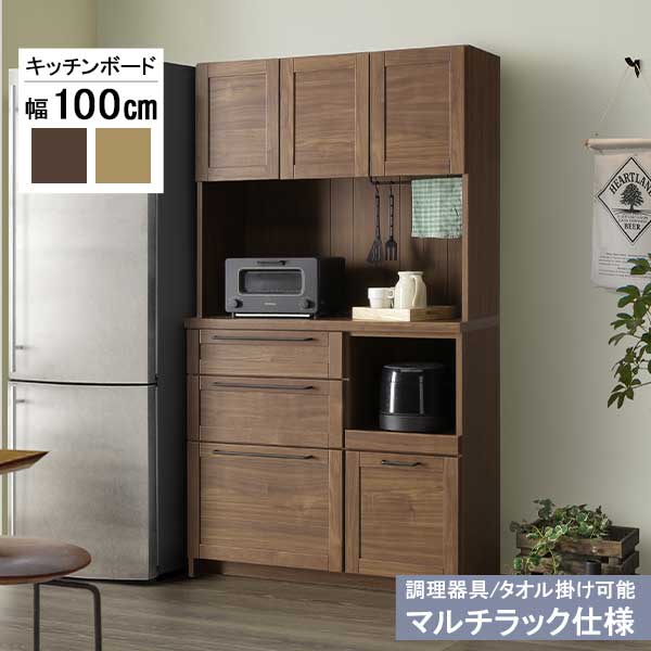 ●商品 ・JULIE ジュリ― 100KB キッチンボード ●サイズ ・幅100×奥行45×高さ180cm ●カラー ・LBR ・MBR ※メーカー・カタログの表示色で基本的に記載しております。 ※印刷物の画像のため実際の商品と色味が異なる場合があります。 ●製品仕様 ・便利な2口コンセントと可動式の棚板付き。 ・オープン部分のマルチラックは取り付け位置を変更可能。 ・3段引き出し。 ・左右の最下段は深引出しになっています。 ・向かって右側にスライドカウンター付き。 ・フルオープンレール仕様。 ・カウンターの耐荷重は約60kg、引出しは約20kg、棚板10kgです。 ●材質 ・[表面材]強化紙(オーク・ウォールナット柄) ・[棚板・内装]コート紙(オーク・ウォールナット柄) ・[カウンター]強化紙 ・[スライドカウンター]ポリ版 ●原産国 ・ベトナム (海外製造のため傷や色ムラ等がみられる... |