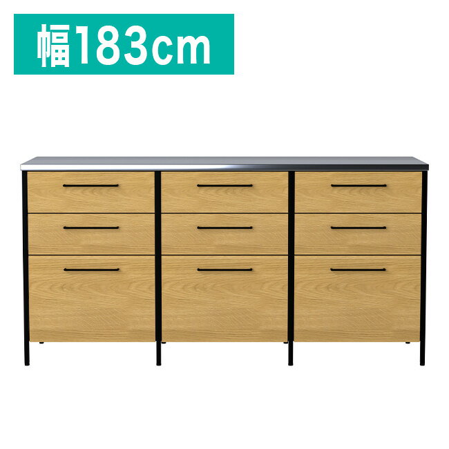 家具の のぐち J-select サイズ 本体・・・巾183cmX奥行48cmX高さ92cm 素 材 主材・・・オーク突板/内装・・・コート紙 天板・・・ステンレス 脚・・・アイアン/ブラック 仕 様 天板ステンレス仕様のサイズや機能が選べるキッチンカウンターです ステンレスは擦りキズが目立ちにくいシルバーヘッジライン仕様です 引出しやカウンターはフルオープンスライドレール付きで出し入れがスムーズにできます オープンカウンターは蒸気の出る家電も安心してご使用いただけるポリ合板仕様です 上1段引出しは下部にゴミ箱が置けるようになっています サイズは43cmから223cmまで20cm刻みでお好みのサイズが選べます(価格は仕様・サイズで異なります) 本品は58cm3段収納・58cm家電収納・58cm引出し1段収納の組み合わせになります 納 期 お届けまで7〜10日ほどお時間が掛かります 発 送... |