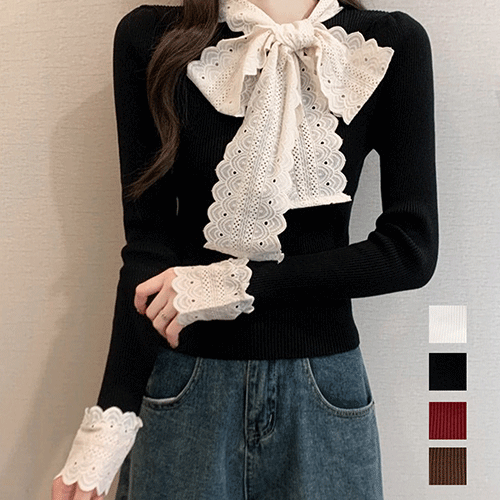リブニット 長袖バイカラー トップス リボン ニットセーター きれいめ 韓国ファッション レース切替 タイトニット 配色 プルオーバー 秋冬 ニットソー 着やせ オフィスカジュアル 刺しゅうレースのボウタイデザインで可愛さをUPするニットトップス ボウタイは、リボン結びのスタイルや、一巻きして垂らす大人っぽいスタイルなど、さまざまなアレンジをお楽しみいただける タイトなシルエットでアウターに響かないため、ジャケットやコートとの相性も抜群 本体素材:ポリエステル75%+アクリル25% 別布素材:綿65%+ポリエステル35% カラー:ホワイト/ブラック/ブラウン/ワインレッド サイズ:ワンサイズ 着丈:約56cm 肩幅:約40cm 袖丈:約67cm ゆき:約87cm 身幅:約42cm 胸囲:約84-120cm 裏地:なし 伸縮性:あり 透け感:ホワイトのみややあり ※ニット素材の為、伸縮具合に... |