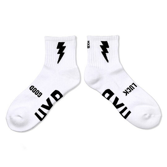 HXB "GOOD LUCK SOCKS" 【SPARK】 ショート丈 抜群の履き心地とフィット感が大好評のHXBグッドラックソックス。 吸水速乾性、保温性に優れたDralon®(ドラロン®)を使用した日本製のソックスです。 Bリーグの選手達も愛用するバスケに最適なお墨付き。 "雷"柄のショートサイズソックスの"SPARK"モデル。 アリそうで他にはナイ、シンプルながらもインパクト抜群のスタイリッシュなデザインです。 両足後ろには刺繍で施されたブランドロゴ"HXB" 甲部分には"願掛け"を込めた"GOOD LUCK"メッセージが織り込まれています。 自分への"願掛け"はもちろん、プレゼントでは喜ばれること請け合いです。 さらに足裏にはHXBロゴを配置。 体育館でバッシュを履く時、靴を脱いだ時にチラリと見える、 クールな装いになっています。 また、抗菌消臭性の高いドラロン... |