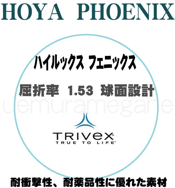 メーカー:HOYA レンズ名:ニュールックスWF167 屈折率:1.67 設計:両面非球面 コート:標準VP(撥水) SFTRUV(耐傷+裏面UV) オプション:VGRUV(硬質耐傷+裏面UV+静電気防止) VGラピスRUV(VGRUV+ブルーライトカットレンズ) VGパールRUV(VG RUV+白色反射) UVカット:標準仕様 オプション:レイガード435( Ray Guard 435(レイガード435)は眼に有害と言われている紫外線をほぼ100%カット。さらにはLED照明やパソコン、携帯などのディスプレイから発するブルーライト(青色光)を軽減した眼にやさしいメガネレンズです。 ※レイガード435とアリアーテカラーの組み合わせ時はレイガード435のカラー種類の選択不可となります。 レイガード435とアリアーテカラーと組み合わせた場合にアリアーテカラー本来の色味とレイガード435素材(若干... |