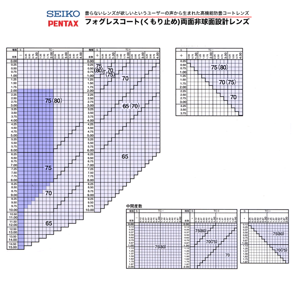 「Synchro Assist」は、 あなたのガンバル眼を全力でアシストするメガネレンズです。 遠くを見る時、眼はリラックスしています。 近くを見る時、眼は調節機能(毛様体筋)が働き、 水晶体でピントを合わせています。そして、この状態が 続くと眼は疲れを感じるきっかけとなります。 この調節機能の働きをサポートするレンズです。 全方位の眼の動きを考慮した設計。だから、レンズのすみずみまできれいに見えます。 レンズの中心部から視線が左右に移動した場合でも、つねに快適な視界が得られます。 3つのタイプより選べます 基本仕様 素材 屈折率:1.67 コーティング VP(汚れがつきにくい)コート UVカット UVカット400 すべて特注になります。製作範囲は下記をご覧ください。 オプションでミラー(ライトオレンジ、ライトシルバー)加工ができま... |