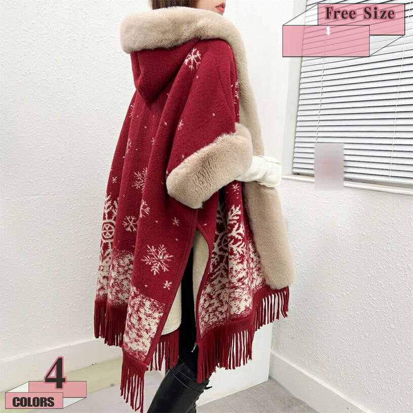 表地:合成カシミヤメイン素材:ポリエステルサイズ: 着丈:90cm ▽ 【防寒ポンチョ】 首元に毛足の長いふかふかのフェイクファーをあしらった上品で大人フェミニンなケープです。厚みのある贅沢な生地は温かく防寒性に優れ、肌寒い時にサッと羽織っていただけます。【小顔効果】ファイクファー襟で顔周りをすっきりとみせてくれるので小顔効果も期待できます。 ☆【生地】柔らかな肌触りで、温もりを感じて、着心地がよく快適。冷え知らずの冬をお過ごしてくださいませ♪毎年の冬定番です!【体型カバー】ゆとりを持たせた大きいサイズで体をすっぽり覆い、ラフで大人可愛いあったかシルエットに。さりげなく見える裏側も美人オーラ満載!バックスタイルもサイドラインも素敵です。ふんわり広がるデザインがカワイイ♪体型カバーとしてもマタニティウェアとしても活用できる着痩せ効果よいのアイテムです。【着用】オフィスで、外出先で、およばれ、... |