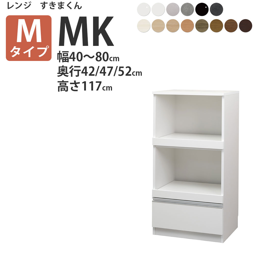 商品詳細 説明 2025年秋、レンジすきまくんがリニューアル!1cm単位で幅サイズオーダー可能な【新レンジすきまくん】は、隙間を有効活用できる国産キッチン収納家具です。奥行が42/47/52cmの3サイズから選べます。電子レンジ・炊飯器・ポットなど家電をすっきり収納できます。カラーは14色から選べ、マンションや狭いキッチンに最適。セミオーダー収納で快適なキッチン空間を実現します。 サイズ幅40-80×奥行42/47/52×高さ180.2cm 重量kgカラーカラーオーダー(全14色): ホワイト(艶有り) W、シルクベージュ(艶消) SB、モードグレイ(艶なし) MG、艶消しブラック(艶消)BB、モードブラック(艶なし) MB、マットホワイト(艶なし) MW、ホワイトシカモア木目(艶消) WS、ライトアッシュ木目(艶消し) LA、リトモナチュラル RN、ミディアムオーク木目(艶消し) M、グ... |