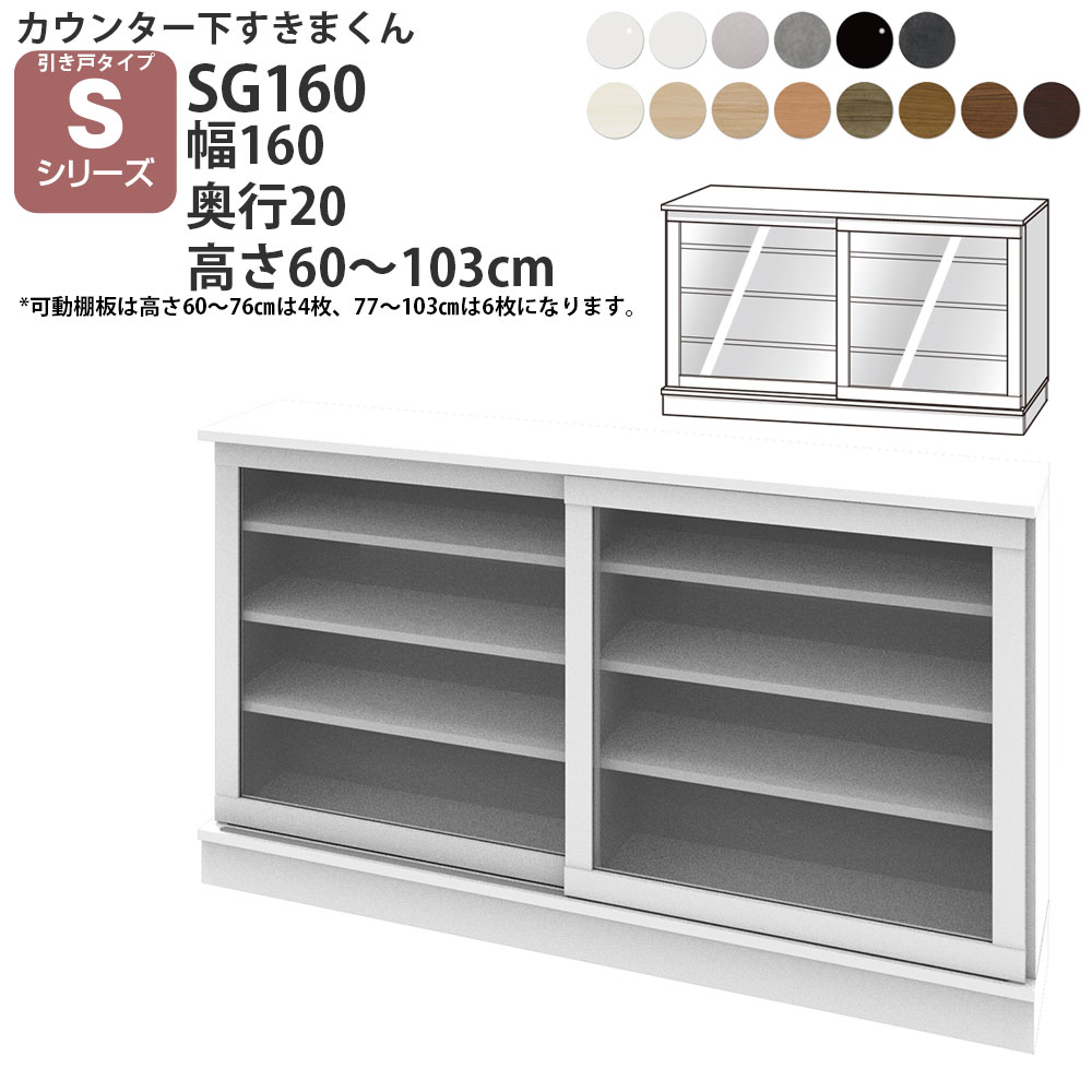 すきまくん カウンター下 収納 薄型 日本製 完成品 フジイ CSD商品詳細 説明 すきまくんカウンター下シリーズがリニューアルしてパワーアップ。新しくポリカ引き戸タイプや引き出し付きコーナー、エンドコーナーが仲間入りしました。つっぱりがなくて美しい高さセミオーダーのカウンター下収納に仕上がります。 サイズ幅160×奥行20×高さ60-103cm 耐荷重棚板、引き出し耐荷重6kg天板耐荷重10kgカラーカラーオーダー(全14色): ホワイト(艶有り) W、シルクベージュ(艶消) SB、モードグレイ(艶なし) MG、艶消しブラック(艶消)BB、モードブラック(艶なし) MB、マットホワイト(艶なし) MW、ホワイトシカモア木目(艶消) WS、ライトアッシュ木目(艶消し) LA、リトモナチュラル RN、ミディアムオーク木目(艶消し) M、グレイウォルナット木目(艶消し) GR、セピアウォルナッ... |