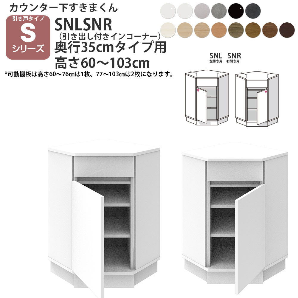 すきまくん カウンター下 収納 薄型 日本製 完成品 フジイ CSD商品詳細 説明 すきまくんカウンター下シリーズがリニューアルしてパワーアップ。新しくポリカ引き戸タイプや引き出し付きコーナー、エンドコーナーが仲間入りしました。つっぱりがなくて美しい高さセミオーダーのカウンター下収納に仕上がります。 サイズ高さ60-103cm 耐荷重棚板、引き出し耐荷重6kg天板耐荷重10kgカラーカラーオーダー(全14色): ホワイト(艶有り) W、シルクベージュ(艶消) SB、モードグレイ(艶なし) MG、艶消しブラック(艶消)BB、モードブラック(艶なし) MB、マットホワイト(艶なし) MW、ホワイトシカモア木目(艶消) WS、ライトアッシュ木目(艶消し) LA、リトモナチュラル RN、ミディアムオーク木目(艶消し) M、グレイウォルナット木目(艶消し) GR、セピアウォルナット木目(艶消し) S... |