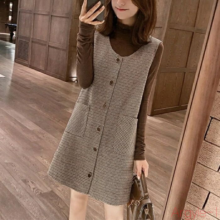 ハイネックのインナー&ノースリーブワンピースのセット。 すっきりとしたシルエットで、羽織りものとの相性も◎ クラシカルな千鳥格子柄が上品可愛いアイテムです。 【カラー】 画像の色 【サイズ】 S/M/L/XL 【サイズ詳細】 インナー S:肩幅34cm バスト78cm 袖丈57cm 着丈56cm M:肩幅35cm バスト82cm 袖丈58cm 着丈57cm L:肩幅36cm バスト86cm 袖丈59cm 着丈58cm XL:肩幅37cm バスト90cm 袖丈60cm 着丈59cm ワンピース S:バスト88cm ウエスト68cm 着丈85cm M:バスト92cm ウエスト72cm 着丈86cm L:バスト96cm ウエスト76cm 着丈87cm XL:バスト100cm ウエスト80cm 着丈88cm 【モデル】 モデル身長:不明 着用サイズ:不明 【注意事項】 お手持ちのパソコン・スマート... |