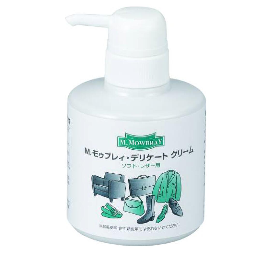商品説明用途・原産国 ■用途:靴・ハンドバッグ・鞄・ブーツ・コート・手帳・財布・家具・ソファ等のスムースレザー(表革)製品・オーストリッチ・ヌメ革・カーフ製品等 ■原産国:イタリア製 成分・容量■タイプ:乳化性 ガラスビン ■成分:ラノリン・油脂・有機溶剤■容量:200ml 商品説明使用方法欧州で生まれたゼリー状のソフトタイプの皮革用栄養クリームです。 皮革の生命である潤い、ツヤ、柔らかさを与えます。自然な風合いを活かし、コンディションをアップします。 ベタ付かず自然な仕上がりは、素材の持ち味を引出すのでソフトレザーに最適です。 皮革に深く浸透し、乾燥、ひび割れから守り製品を長持ちさせます。無色ですのでどんな色の皮革製品にもご使用いただけます。 ラノリン(革の柔軟剤)を配合しているので、革の柔軟性を保ちます。■使用方法 布(クロス)や柔らかい毛のブラシにM.モゥブレィ デリケートクリーム... |