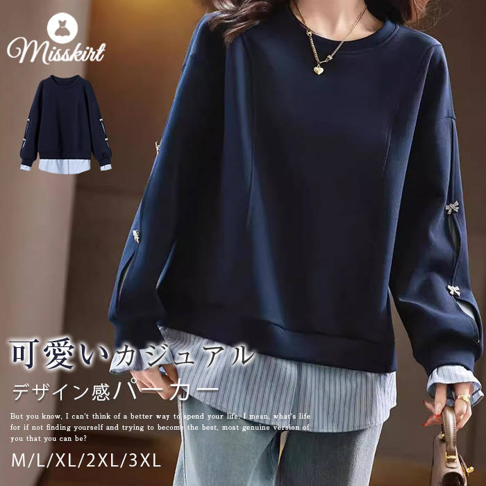 裾レース&フェイクパールデザインが、上品かつ大人可愛いパーカー。程よい厚みの裏起毛で暖かく、厚すぎず薄すぎないちょうど良い厚みで、秋・冬〜春までロングシーズン着用OK。ヒップラインが隠れるチュニック丈×ゆるシルエットで体型もカバーできます。1枚で着るのは勿論、ジャケット・Gジャン・パーカー・カーディガン・コートなどの上着・アウターも相性◎ジーンズ・デニム・ストレッチパンツ・ワイドパンツのパンツ類とも◎ サイズ S M L XL 2XL 3XL 4XL サイズについての説明 S M L XL 2XL 3XL 4XL 素材 スウェット 色 ネイビー 備考 ●サイズ詳細等の測り方はスタッフ間で統一、徹底はしておりますが、実寸は商品によって若干の誤差(1cm〜3cm )がある場合がございますので、予めご了承ください。 ●商品の色は、撮影時の光や、お客様のモニターの色具合などにより、実際の商品と異な... |