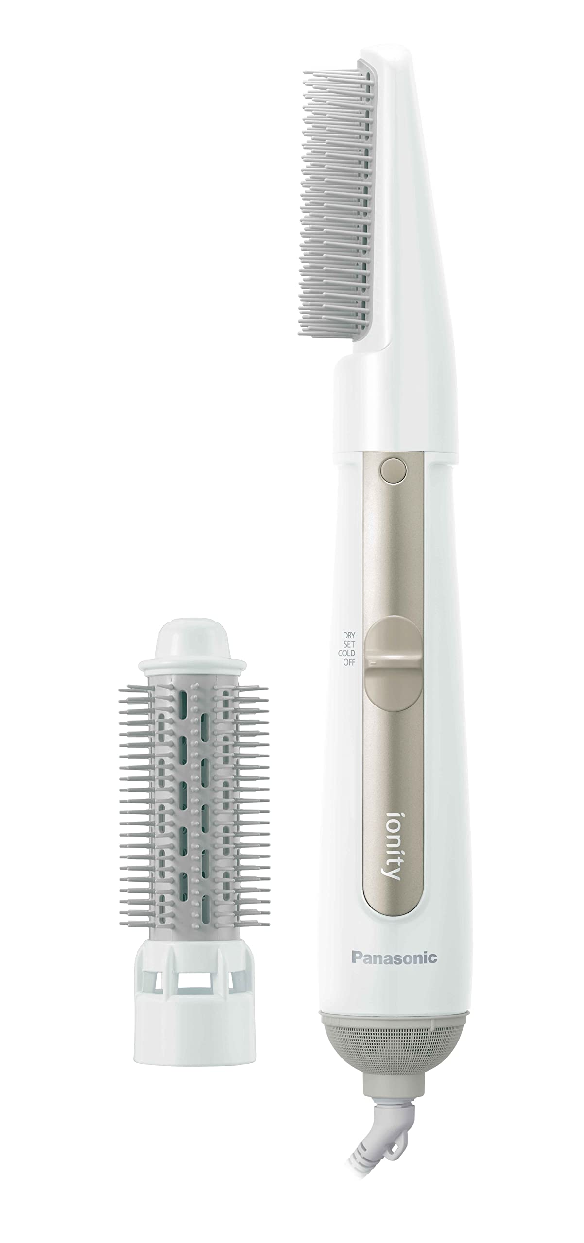 ■ Panasonic(パナソニック) ■くるくるドライヤー イオニティ EH-KE4M◆ 主な特長 ◆マイナスイオンで、つややかに簡単スタイリング。●ボリュームアップブラシで、 根元の髪をふんわり立ち上げ簡単ボリュームアップ。●マイナスイオンが髪の表面をやさしくコートし、さらさらツヤツヤにスタイリング。●選べる3段階切替で、温風でセットした髪を冷風でキープする、プロのテクニックが簡単に。◆ 主な仕様 ◆■電源方式:交流式■温風温度:約120℃(ドライ・室温30℃の時)■電源コード長さ:1.7m■本体寸法:長さ33.4×最大径5.35cm(ブローブラシ取付時)■質量:約335g(ブローブラシ取付時)■機能:マイナスイオン■電源:AC100V 50-60Hz■消費電力:700W(DRY時)■生産国:タイ■付属品:ブローブラシ, 太ロールブラシ, ボリュームアップブラシ簡易商品仕様シリーズ名:... |