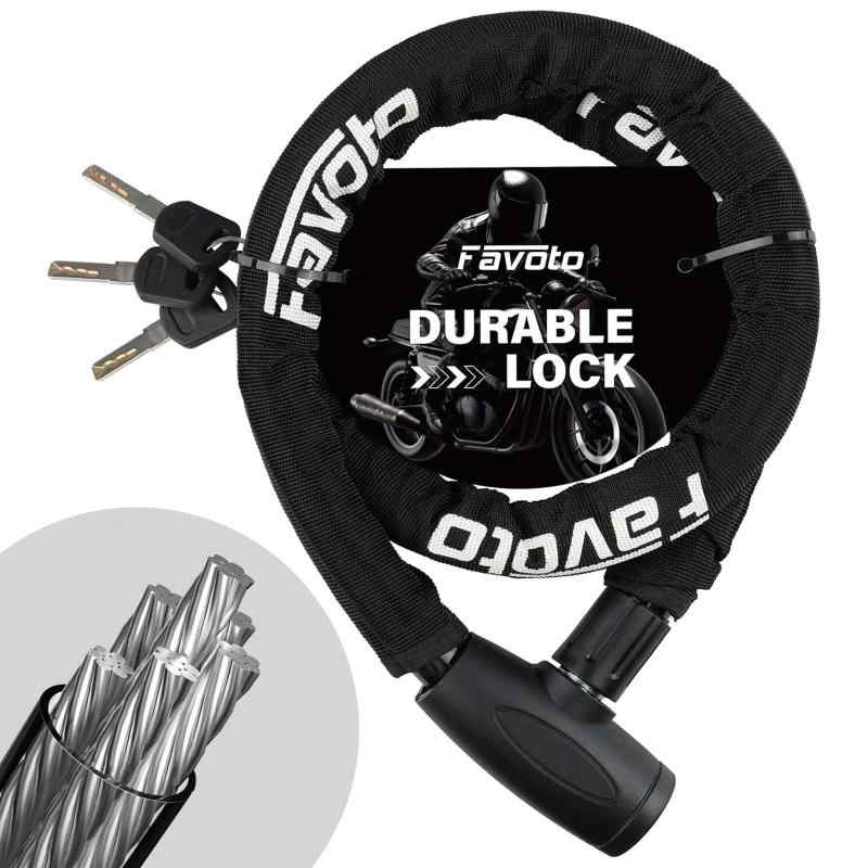 Favoto バイクロック チェーンロック 【鍵3本付き 軽量0.7KG 3層構造】 極太デザイン 高靭性PVCコート 高強度強化された鋼線 バイク盗難防止 頑丈 安定 耐久 オートバイ Eバイク 自転車 クロスバ【高強度材料と精密設計】頑丈で信頼性の高いロックヘッドは、高強度、耐久性、防水性に優れたABS材料を使用し、さらに精密な亜鉛合金製のシリンダーを採用しています。この組み合わせにより、優れた安全性と耐久性を実現しています。【直径22mmの極太設計】直径22mmの極太設計で、バイクロックは卓越な防犯性能を誇ります。極厚の鋼線にはPVCコートとナイロンカバーが施され、優れた防犯性が実現されています。これらの特徴を組み合わせ、バイクロックは優れた防犯性能を発揮します。【防塵・防水設計で寿命延長】錠穴には防塵キャップが装備されており、埃や水分の侵入を防ぎ、錠芯の寿命を延ばします。これにより... |