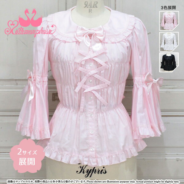 ☆不良・誤送以外の返品不可 ☆DESIGNER'S COMMENT☆ 丸襟と優雅に広がる姫袖がポイントのブラウスです♡ 身頃のシャーリングで着心地もよく、甘さと上品さを兼ね備えたアイテムです♪ ☆色展開☆ ■ ピンク □ オフ白 ■ 黒 ☆素材☆ ブロード(綿100%)、トーションレース、サテンリボン ☆仕様☆ 裏なし、前釦で着脱 ◇付属品(取り外し可能パーツ)◇ 後ウエストリボン、胸元リボンブローチ、袖リボンブローチ ☆サイズ☆ 【通常サイズ】 生地の伸縮性:*伸縮性なし 着丈:BNP〜54cm(フリル込み)、BC〜54cm(フリル込み) * BC→後ろ中心 BNP→首の付け根 バスト:72cm〜136cm ウエスト:62cm〜130cm 肩幅:35cm 袖丈:47cm(フリル込み) 袖口:30cm アームホール:45.5cm 【プラスサイズ】 生地の伸縮性:*伸縮性なし... |