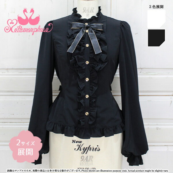 ☆不良・誤送以外の返品不可 ☆DESIGNER'S COMMENT☆ 重なるフロントのフリルが美しいブラウス♡ お袖部分にも生地をたっぷり使用している、ボリューミーなデザインです。 ☆色展開☆ □ オフ白 ■ 黒 ☆素材☆ デシン(ポリエステル100%)、ライン入りサテンリボン ☆仕様☆ 前ボタンで着脱 ◇付属品(取り外し可能パーツ)◇ 後ろウエストリボン→ボタンで取り外し可、リボンブローチ×1 ☆サイズ☆ 【通常サイズ】 生地の伸縮性:*伸縮性なし ゴム調節口:なし 着丈: 首の付け根〜54cm(フリル込み)、後ろ中心(襟を除いて)55cm(フリル込み) * BC→後ろ中心 BNP→首の付け根 バスト:95cm〜最大約103cm程度 ウエスト:81cm〜最大約90cm程度 肩幅:35cm 袖丈:60cm+フリル5cm 袖口:20cm アームホール:45.5cm 【プラス... |