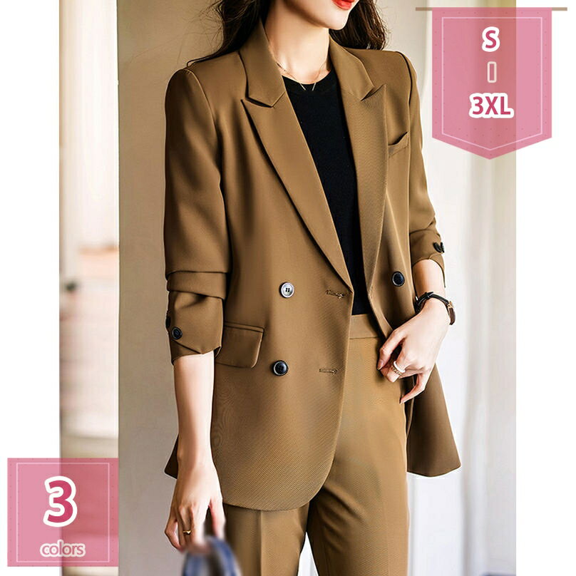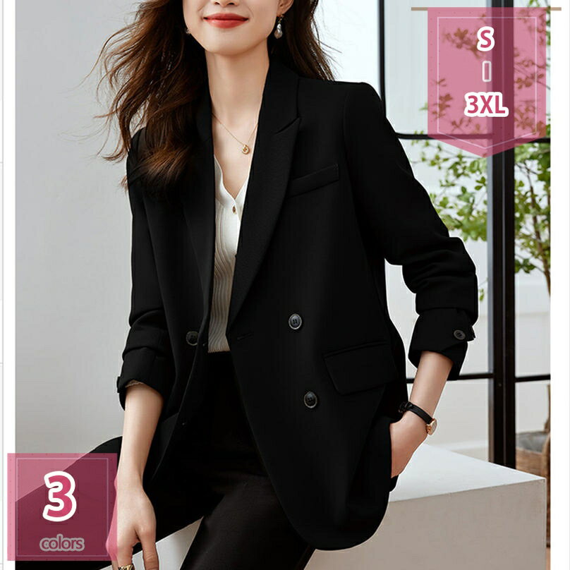 ■ダブルブレストジャケット 2025COLLECTION 控えめな光沢と上品なマット感が上品なジョーゼット生地を使用した、オーバーサイズのトレンドシルエットが魅力のレディースダブルブレストジャケット。 ゴールドボタンが効いたトレンドライクなデザインのジャケットは、オフィススタイル・フォーマルスタイル・お出かけスタイル・カジュアルスタイルすべてにぴったり。 オフィスシーンではスタイリッシュな印象を与え、カジュアルシーンでは着回し力抜群。 近年の入学式(入園式)や卒業式(卒園式)などの特別な行事では少しカジュアルなリラックススタイルがトレンドになっているので、フォーマルシーンでも着回しやすいのが嬉しいジャケットです。 きちんと感と抜け感を持ち合わせ、単品ではもちろん、セットアップとして組み合わせても楽しめるアイテムです! 【Color variation】 ・Black ・Brown ・Gre... |