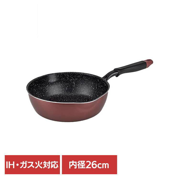 | ◇多彩にこなせる!鍋のように使える深いフライパン深さ約7.5cmでお鍋のように使えるから、「煮る」「炒める」「揚げる」「茹でる」がこれ一つでできて、お料理の幅がグッと広がります。◇液だれしにくく注ぎやすい大きな注ぎ口両端に便利な注ぎ口があり、左右を選ばず注げるから持ち変える必要がありません。◇耐摩耗試験約10万回クリア※(一財)日用金属製品検査センター調べ内面はごびりつきにくく、焦げ付きにくい、特殊ふっ素樹脂加工でお手入れ簡単です。(内面4層コート加工)◇金属ヘラOK※角のとがった金属製のヘラなど、鋭利な道具に使用は避けてください。◇IH・ガス火対応※食洗器には使用しないでください。●サイズ/約全長47.5×内径26×深さ7.5cm、底の厚さ:約2.6mm●重量/約700g●満水容量/約3.7L●材質/本体:アルミニウム合金(内面:ふっ素樹脂塗膜加工、外面:焼付け塗装)・はり底:ステンレス... |