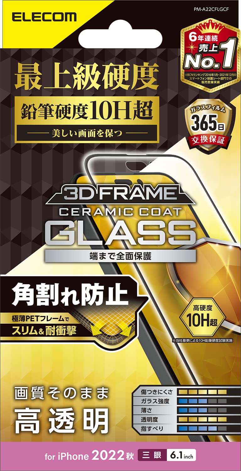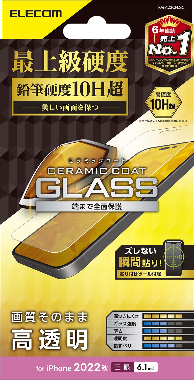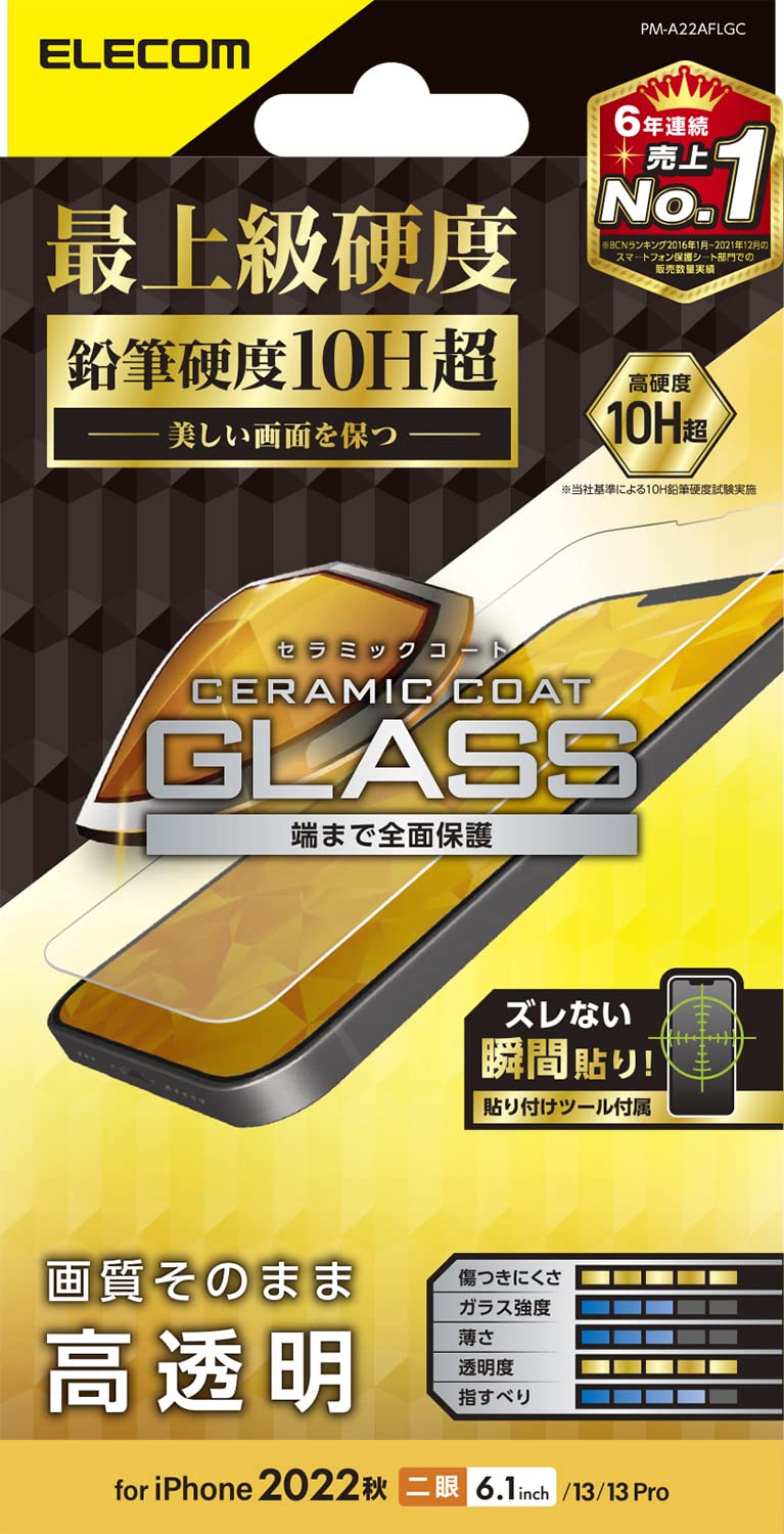 | 高硬度ガラスを更に強化。鉛筆硬度10H以上のセラミックコートにより傷に強い、iPhone 14、iPhone 13、iPhone 13 Pro用ガラスフィルムです。 ※当社液晶保護ガラスフィルム製品内の比較 高精細液晶を損ねない高い透明度を実現します。 鉛筆硬度10H以上のセラミックコートを採用しています。 貼り付けの際にずれやすいフィルムをぴったり位置合わせできる貼り付けツール付き。 貼り付け面にシリコン皮膜をコーティングし、接着剤や両面テープを使わずに貼り付け可能な自己吸着タイプです。貼りやすく、貼り直しも可能です... |