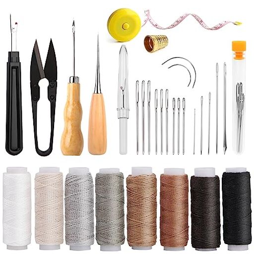 レザークラフトツールセット:8x室内装飾糸、7xレザーミシン針、9xビッグアイ鈍針、1xミシンキリ、1xフックキリ、1xメジャー、1xランダムカラーミシンシンブル、1xニードルボトル、ハサミx1、シームリッパーx2。豊富なポートフォリオで様々なニーズにお応えします さまざまなサイズの高品質針セット:手縫い針は硬く耐久性のある金属製の鉄でできて、曲がりにくい、なめらかで、耐食性と耐摩耗性が抜群です。サイズと形状がそれぞれ違う針はご用途と目的によりご自由に選ぶことができる 使いやすい:プロでも初心者でも、このレザークラフトキットは便利で使いやすいことがわかります。DIY手縫い愛好家に特に適しています 幅広い用途:当社の32ピースの室内装飾修理キットは、カーシート、ソファ、傘、カーペット、インテリア、コート、テント、マットレス、毛皮に使用できます。さまざまな革、布地、デニム、キャンバス、防水シー... |