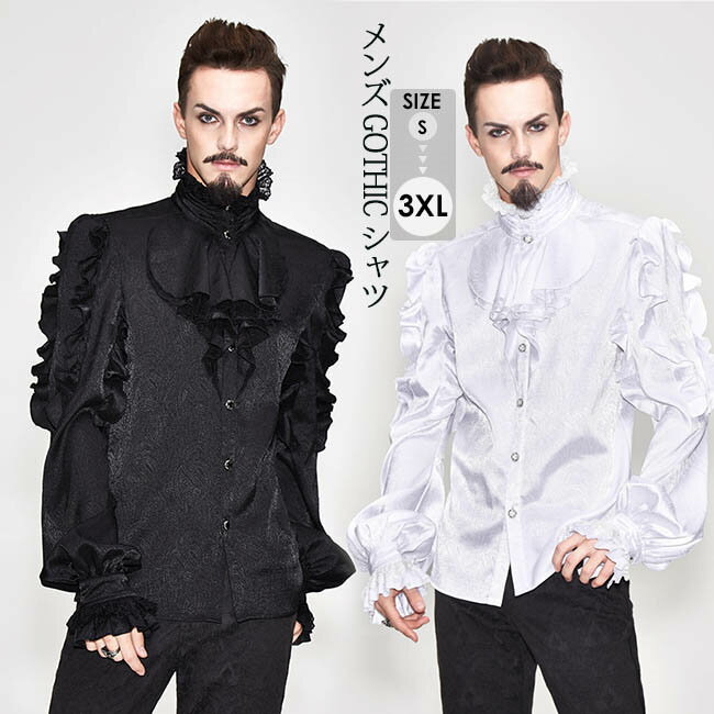 中世 服 メンズ 大きいサイズ ゆったり レトロ ゴシック風 コスチューム 衣装 長袖 シャツ フリル スタンドカラー シングルブレスト ボタン 白 黒 ... |