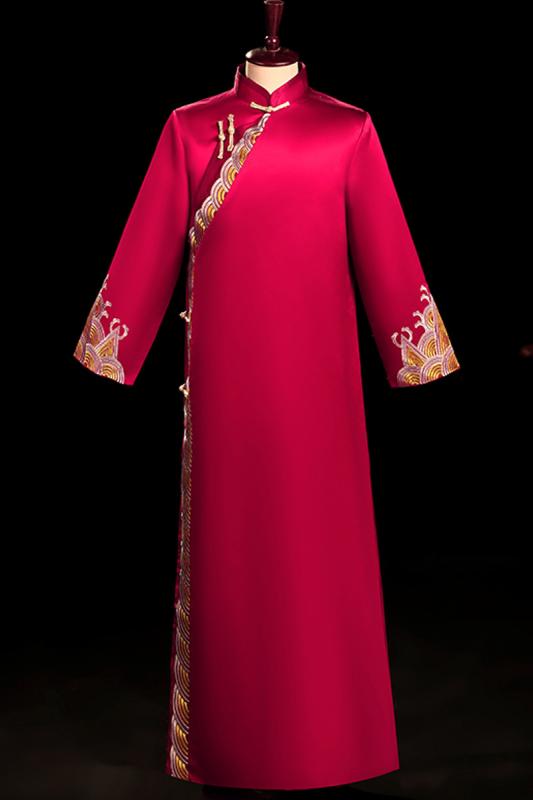チャイナ服 メンズ チャンパオ レトロ 衣装 ローブ レトロ ルーズ リネン ロング ガウン マンダリン ジャケット グリーン イエロー スタンドカラー 長袖 無地 シンプ... |