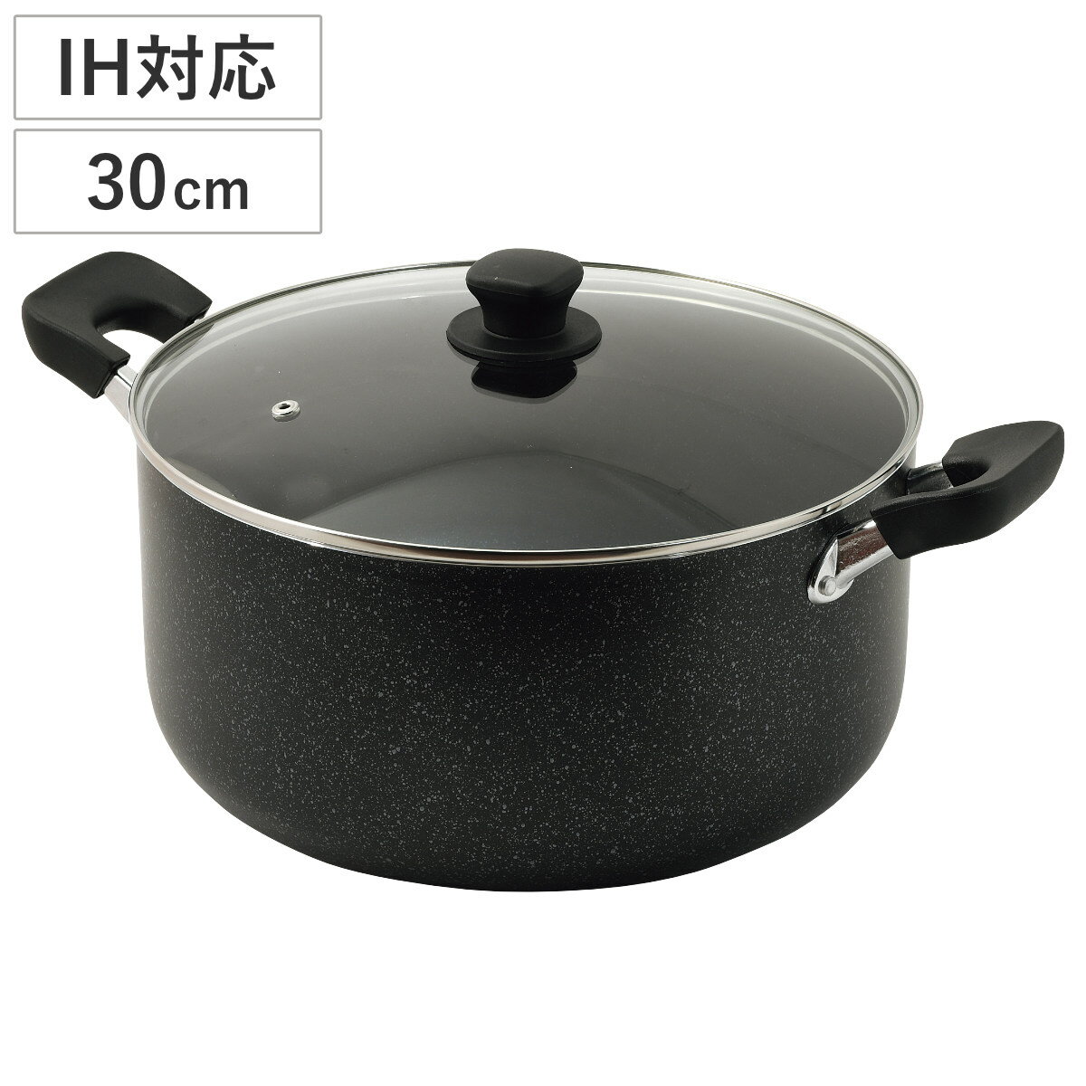 ヤマダオリジナル 卓上鍋 ブラック 20cm●ガス火・IH両対応IH(200V)は、中火以下でご使用下さい●吹きこぼれにくい構造●箸やおたまを置ける。便利なつまみ●お手入れ簡単ダイヤモンドコート加工●2人〜3人用【仕様】満水容量:2.6Lサイズ:直径28.5cm×幅24.5cm×高さ12cm本体:アルミニウム合金はり底:ステンレス鋼(クロム16%)内面:ダイヤモンドコート加工外面:焼付け塗装ガラスふた:強化ガラス製器具つまみ:ナイロン(耐熱温度 180℃)枠:ステンレス鋼(クロム17%、ニッケル4%)蒸気口:ステンレス鋼(クロム18%、ニッケル8%... |