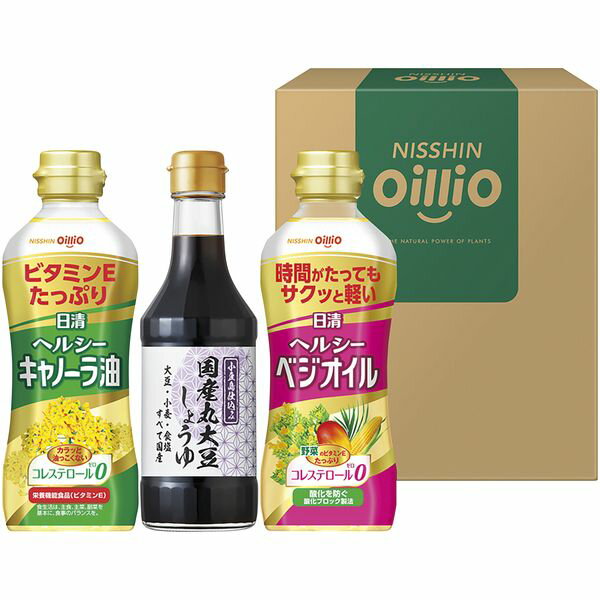 ●商品名/日清 オイルバラエティ セット OV-40A●商品内容/ヘルシーキャノーラ油350g×2、ヘルシーベジオイル350g×2、ヘルシーオフ350g×2、エキストラバージンオリーブオイル145g×1、ヘルシーごま香油145g×1●賞味期限/常温保存760日●アレルゲン/ごま●重量/約3.3kg●箱サイズ/約30.8×42.5×6.5cmご家庭で人気のオリーブオイル、ごま油にヘルシーキャノーラ油などの汎用油をバラエティ豊かに詰合せた内容です。※メーカー都合により、デザイン・内容等が変更になる場合がございます... |