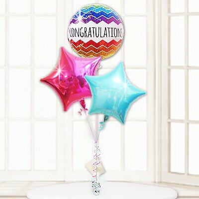 ☆CCGカラフルシェブロン スター3バルーンセット☆ お祝いの言葉を形にして贈ることができるギフトです♪ 輝くレインボーカラーのバルーンは、光にあたると反射してキラキラと輝くプリズム加工が施され虹のようなカラーリングがパッと目を引きます。 それに2色の星型バルーンでアレンジした、キラキラ眩いバルーン電報ギフトです☆ 幼稚園受験、小学校受験、中学受験、高校受験、大学受験などの合格祝いや昇進試験、一級建築士、司法試験などの資格試験の合格祝いなどに☆ そのほかに、入学卒業祝い・七五三・成人・開店祝い・新築祝い・栄転祝いなどに セット全体 約140cm プリントバルーン1個 無地バルーン2個 プリントされているメッセージ:「Congratulations」(おめでとう!) 素材:アルミバルーン ※端末の発色具合によって現物の色と異なる可能性があります。 【含まれるもの】 ・ヘリウムガス入りバルーン... |